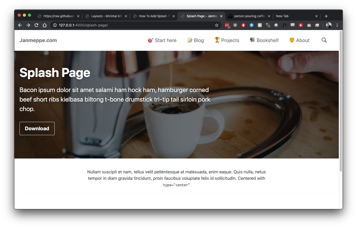 In this blog post I will show you how to add a simple splash image to your minimal mistakes blog. View my current splash page here.